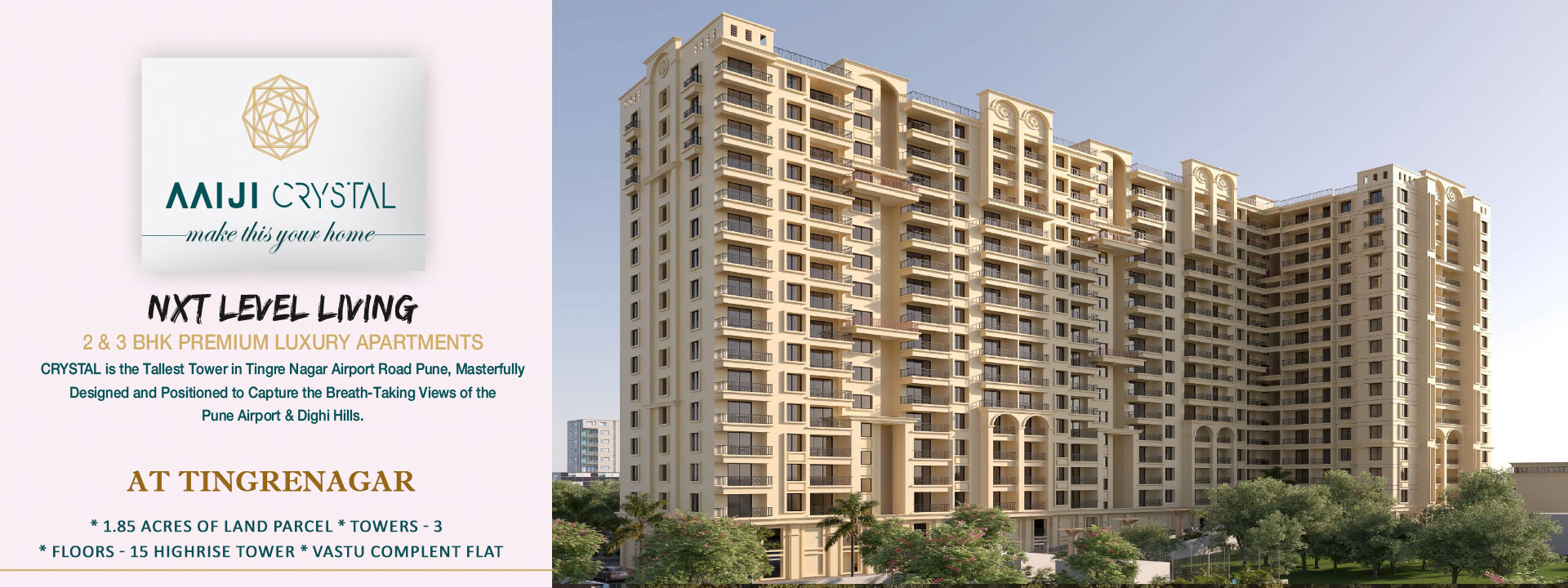 WE DO MORE THAN LUXURY, WE DO THE IMPOSSIBLE! CRYSTAL is the Tallest Tower in Tingre Nagar Airport Road Pune, Masterfully Designed and Positioned to Capture the Breath-Taking Views of the Pune Airport & Dighi Hills.